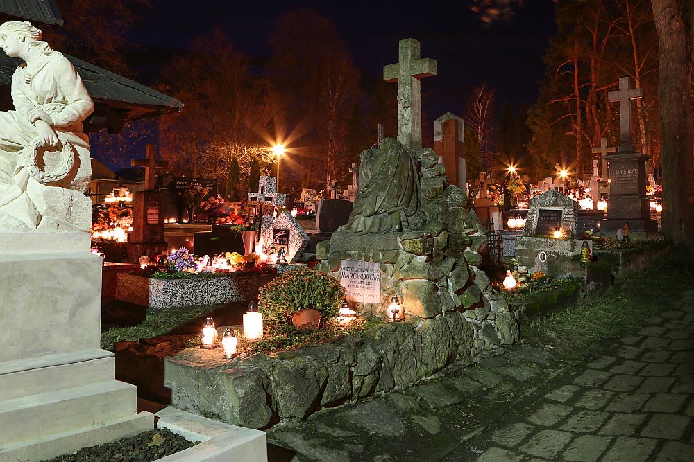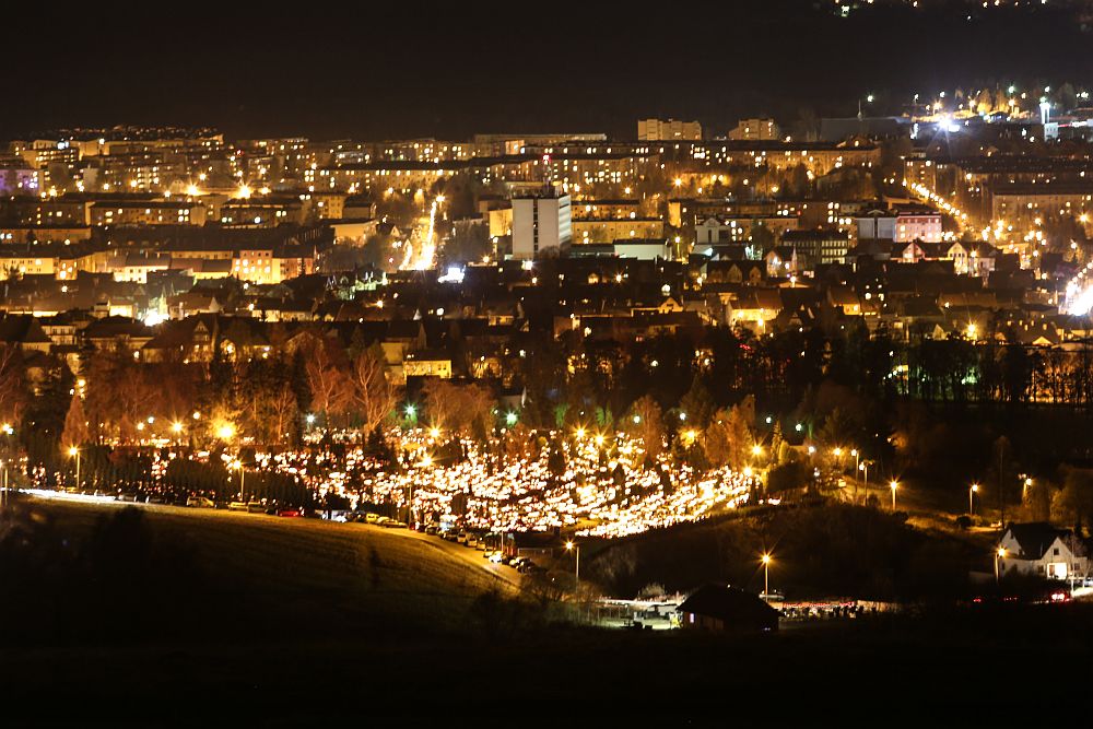 Jak co roku, prezentuję nocne zdjęcia nowotarskiego cmentarza oraz kilka zdjęć z Działu z widokiem na Cemtnarz i Nowy Targ.
