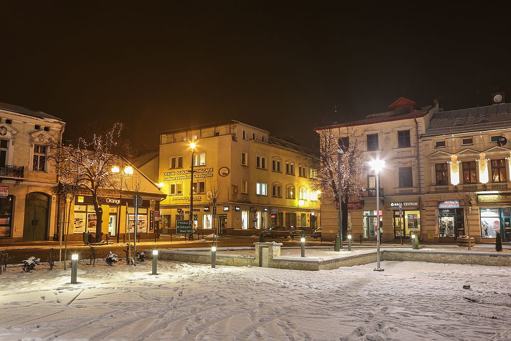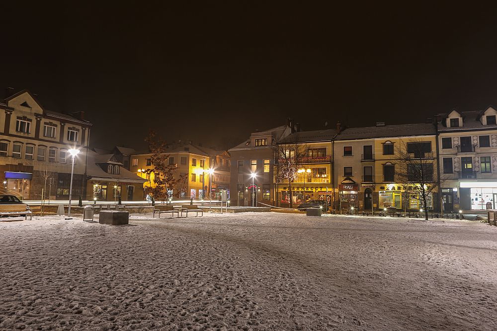 Nocne zdjęcia nowotarskiego Rynku po rewitalizacji.