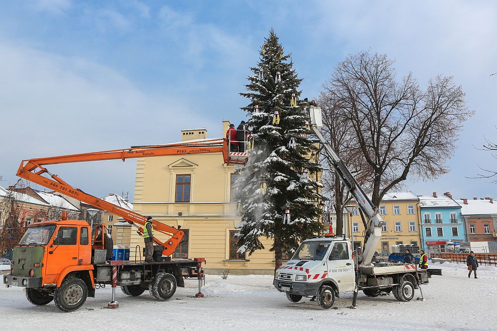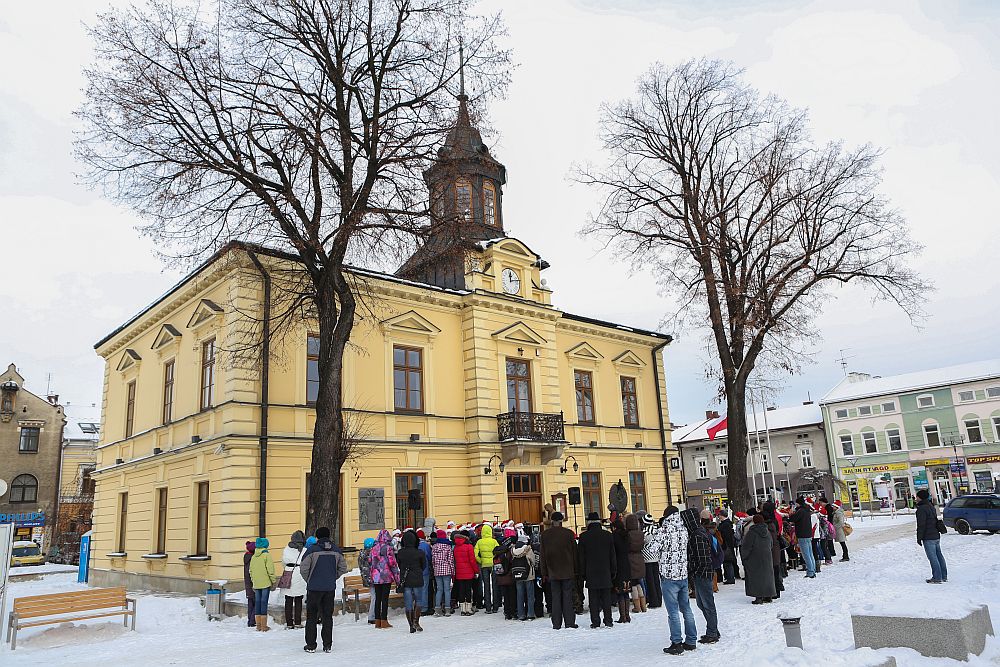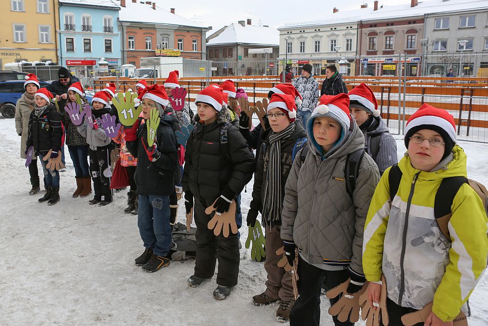 W tym roku dzieci ze Szkoły Podstawowej nr 11 ubrały choinkę miejksą która rośnie obok Ratusza w Nowym Targu.