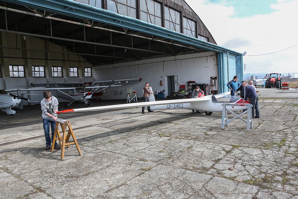 Dzisiaj na nowotarskim lotnisku członkowie aeroklubu przygotowywali sprzęt do zbliżającego się sezonu lotniczego. Szybowce są już poskładane i czekają na pierwsze w tym roku obloty.