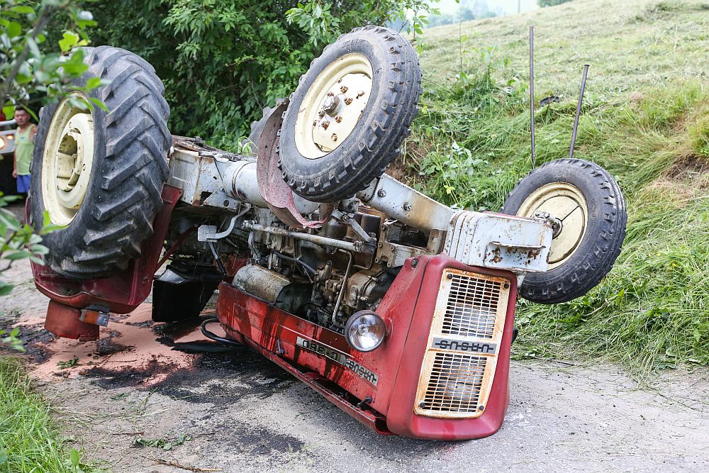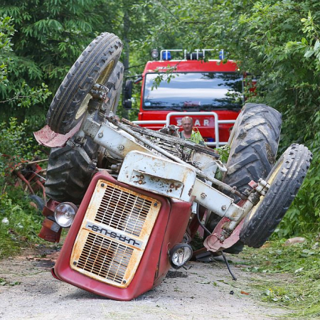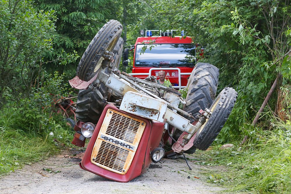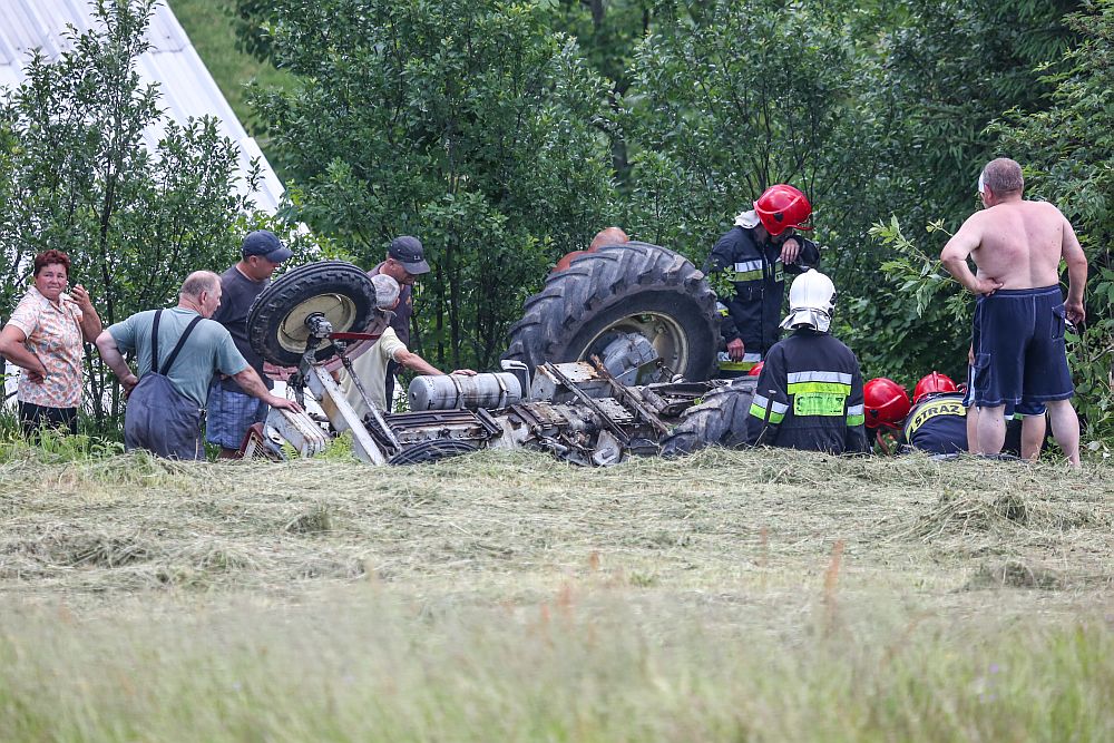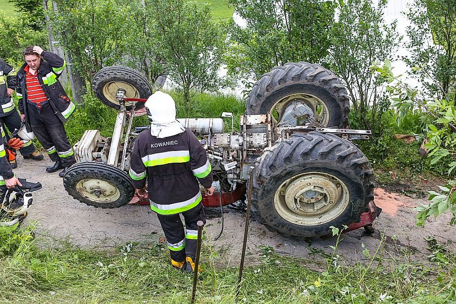 Na os. Zadział wywrócił się traktor przygniatając mężczyznę. Kierowca przewracał siano, kiedy ciągnik przechylił się na bok i spadł ze skarpy lądując do góry kołami i przygniatając kierowcę.