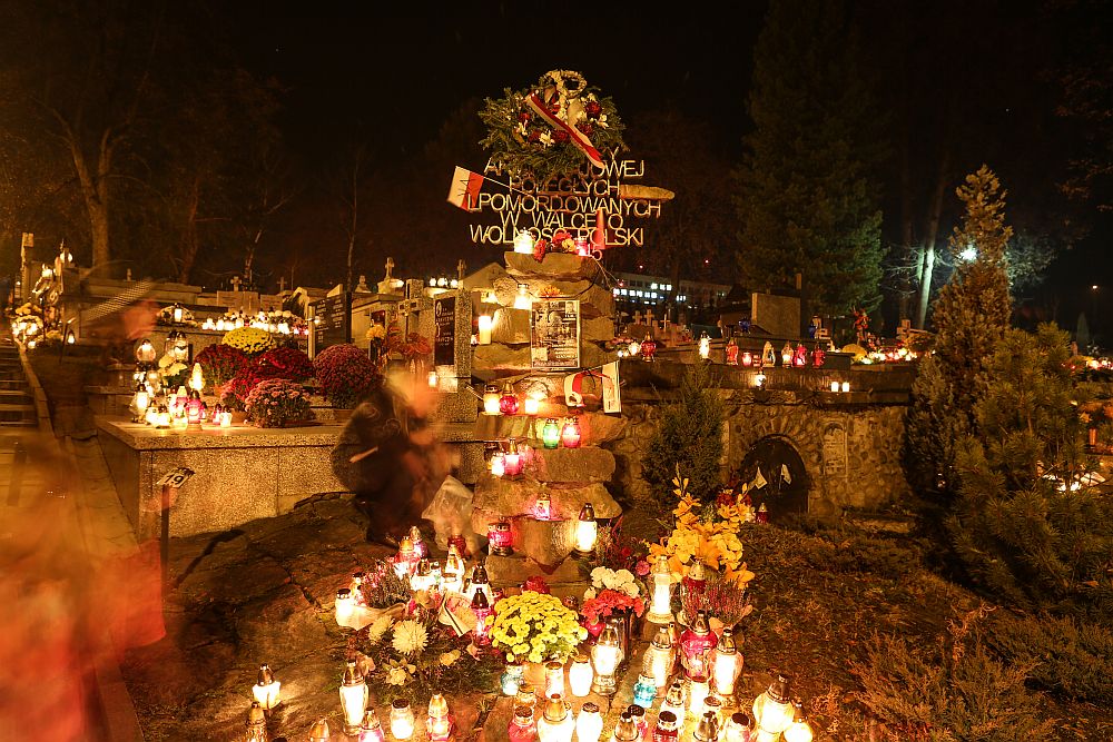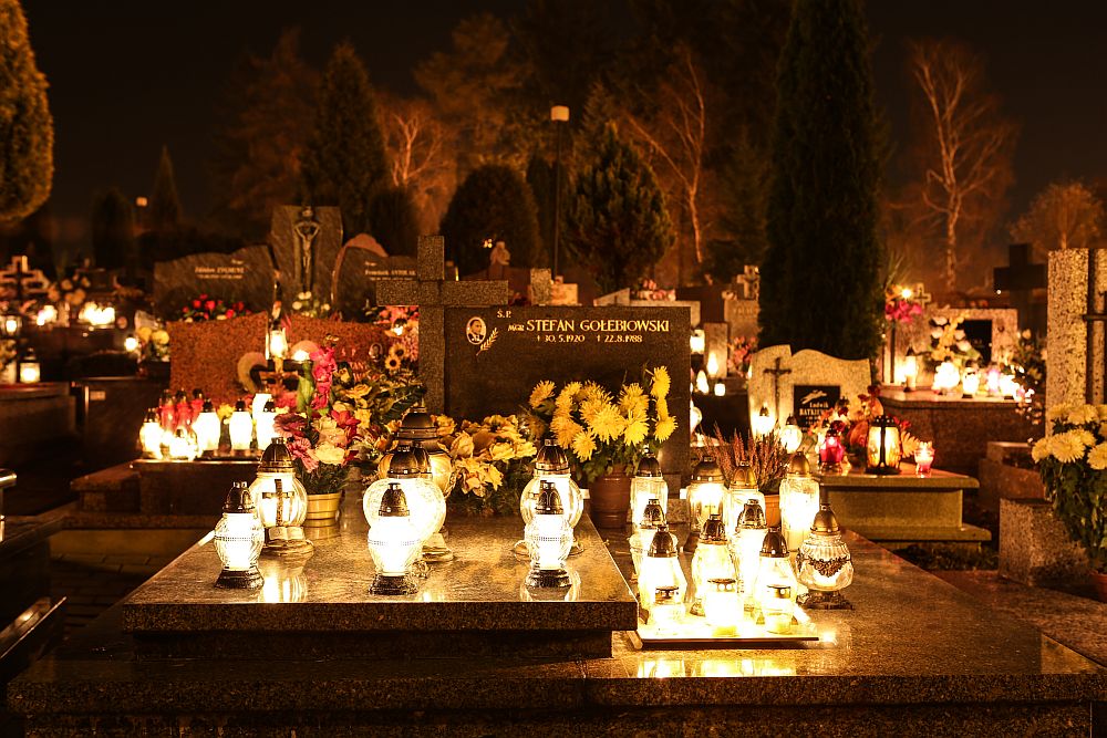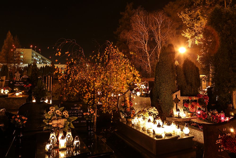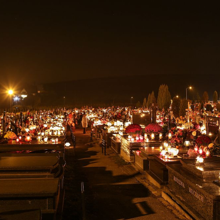 Nowotarski cmentarz w nocy