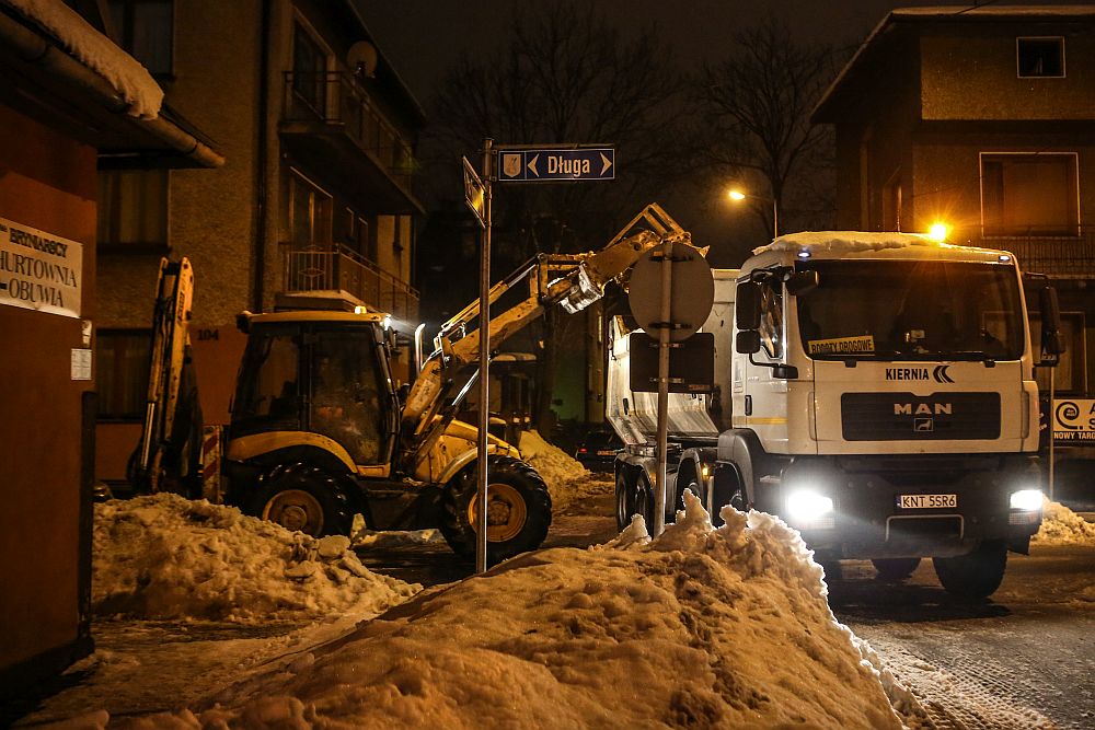 Wywożenie śniegu z ulic Nowego Targu