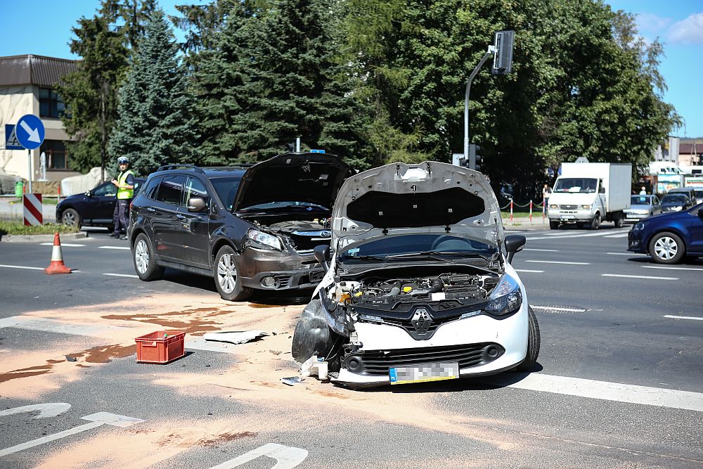Zderzenie samochodów na skrzyżowaniu Al. 1000-lecia i Kopernika w Nowym Targu