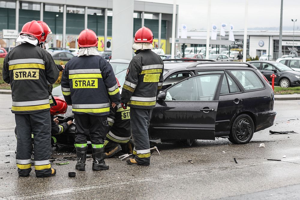 Zderzenie samochodów koło Castoramy