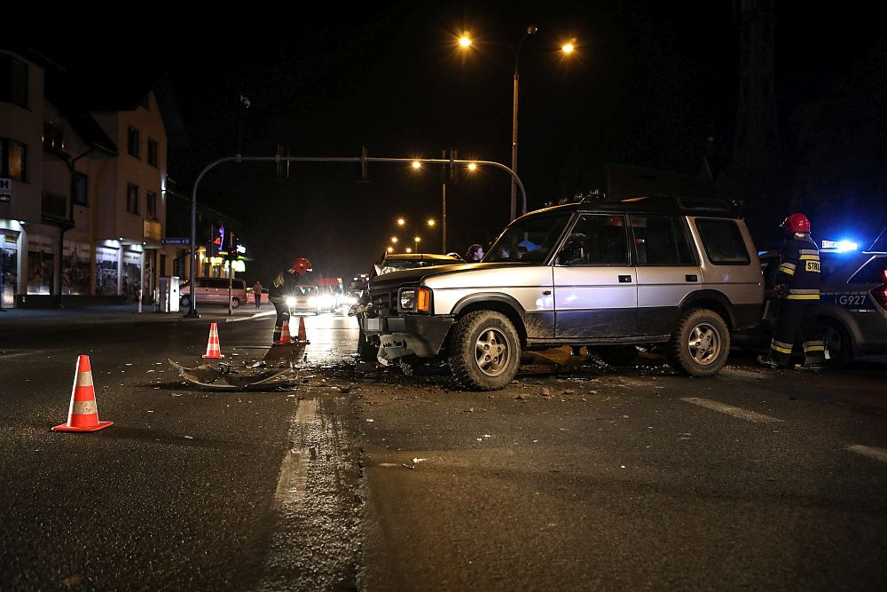 Zderzenie samochodów na skrzyżowaniu Al. 1000-lecia i Szaflarskiej w Nowym Targu