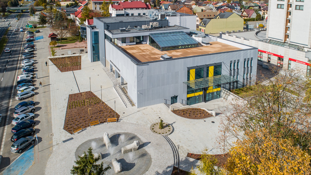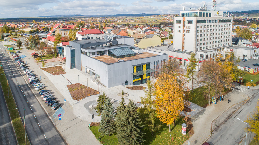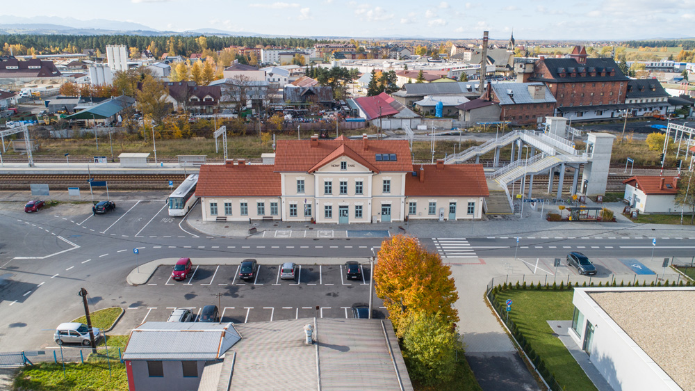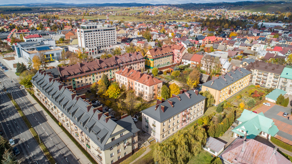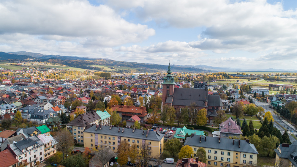 Jesienny Nowy Targ z lotu ptaka