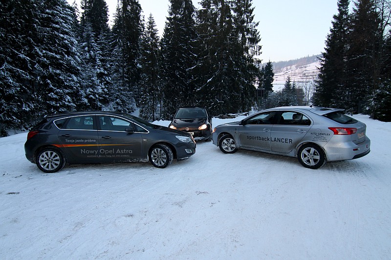 Zdjęcia najnowszych modeli Mitsubishi Lancera, Opla Astry i Volkswagena Golfa
