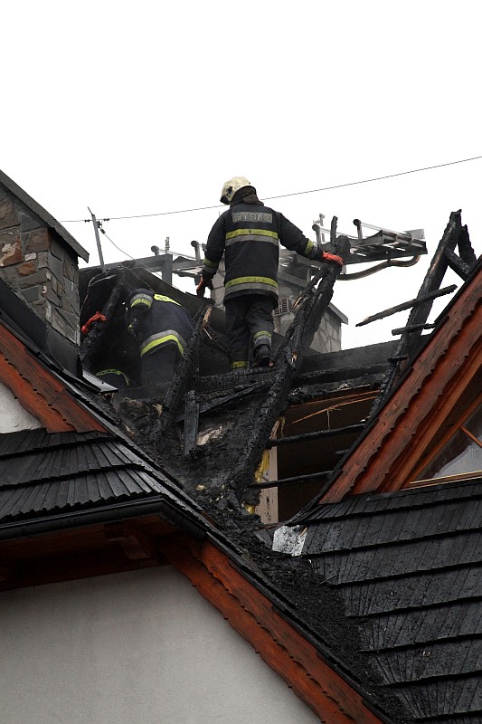 Dzisiaj okolo godziny 17.00 Zakopiańska Straż Pożarna odebrała wezwanie o palącym się dachu jedno z pensjonatów w Białce Tatrzańskiej. Na miejsce przybyło ponad 20 zastępów straży pożarnej, pożar szybko ugaszono, ale i tak ogień strawił przeszło 100m. kwadratowych dachu i część poddasza. Straty oszacowano na 200-300 tysięcy zł.