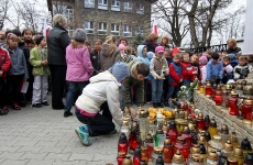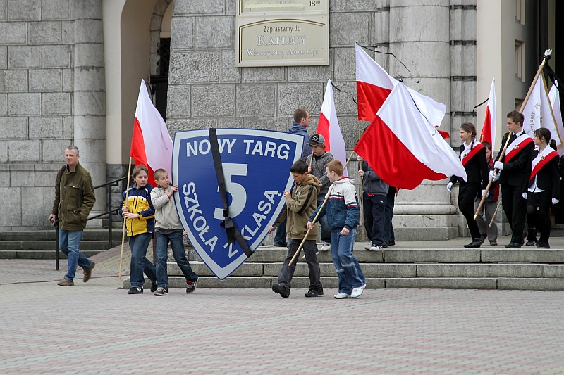 Ponad 600 uczniów Szkoły Podstawowej nr 5 przeszło dzisiaj w marszu żałobnym ulicami Nowego Targu, aby dojść pod Krzyż Ofiar Katynia i tam oddać hołd zmarłym w katastrofie lotniczej, która miała miejsce w sobote 10 kwietnia 2010r.