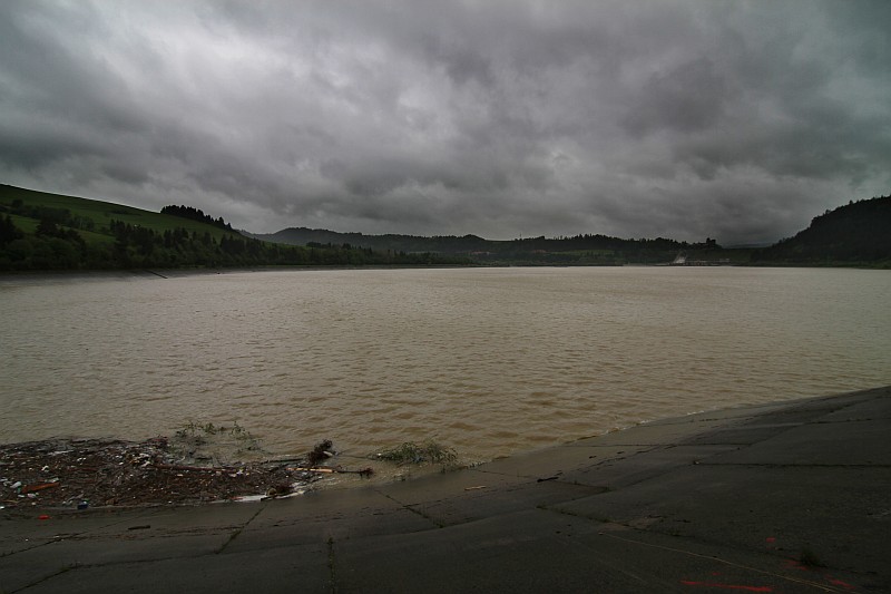 Dzień dzisiejszy zaczął się dość niespokojnie, ponieważ rzeki które opadły przez noc, rano znowu zaczęły przybierać. Na szczęście po południu sytuacja zmieniła się na lepsze - rzeki opadają. Poziom wody w Jeziorze Czorsztyńskim jest bardzo wysoki i dzisiaj dochodzi już do 3/4 śluzy. Woda spuszczana jest ze zbiornika wyrównawczego, tam otwarte są wszystkie grodzie.