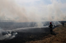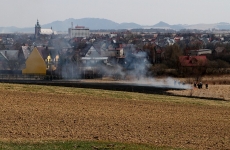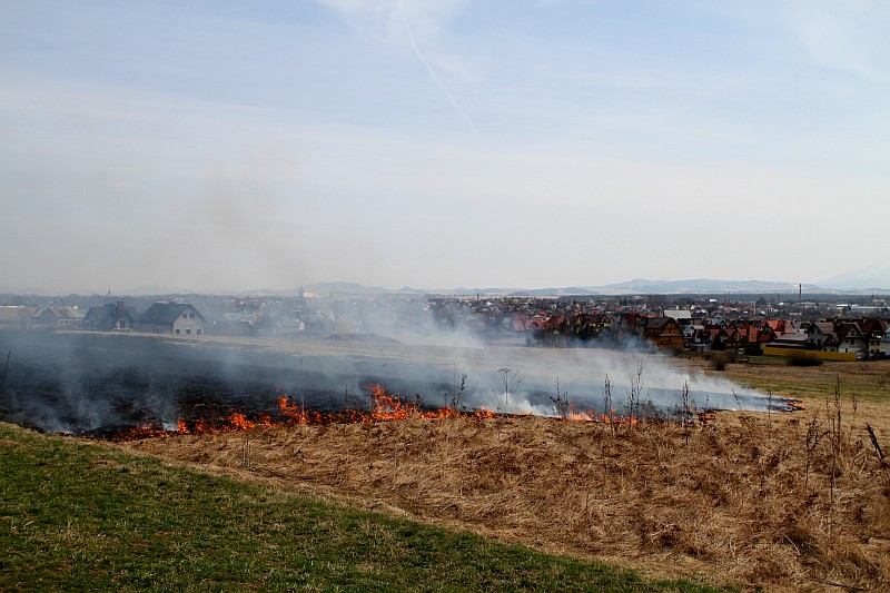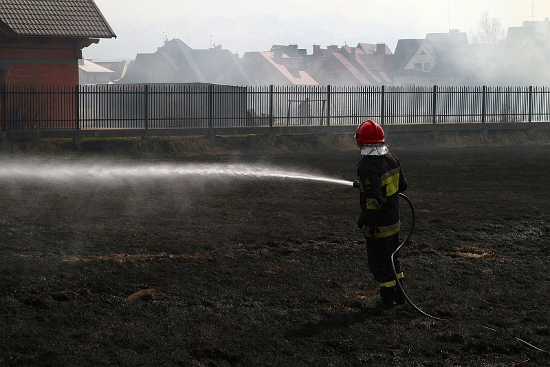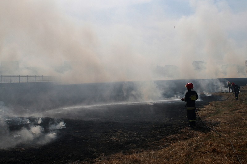 Zdjęcia z pożaru trawy na ul. Partyzantów. Tym razem było groźnie, gdyż pożar zagrażał budynkom mieszkalnym.