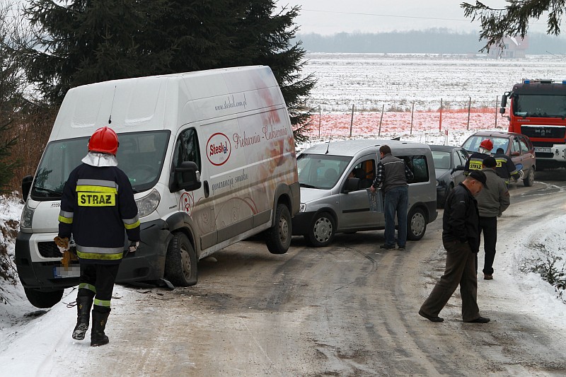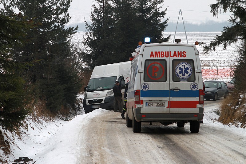Na śliskiej drodze, przy wyjeździe z ulicy Grel w stronę Ludźmierza lub Trutego, doszło do zderzenia samochodu osobowego z busem. W wyniku wypadku obrażenia odniosła kierująca samochodem osobowym.