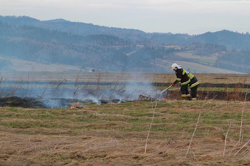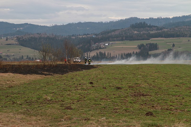 Za sortownią śmieci w Nowym Targu, w kilku miejscach paliła się dzisiaj trawa. Na miejsce pojechało kilka jednostek okolicznych OSP, ale dłużej niż gaszenie trwało wyciąganie wozów strażackich z grząskich pól, które się zagrzebały przy próbie dojazdu do miejsca pożaru.