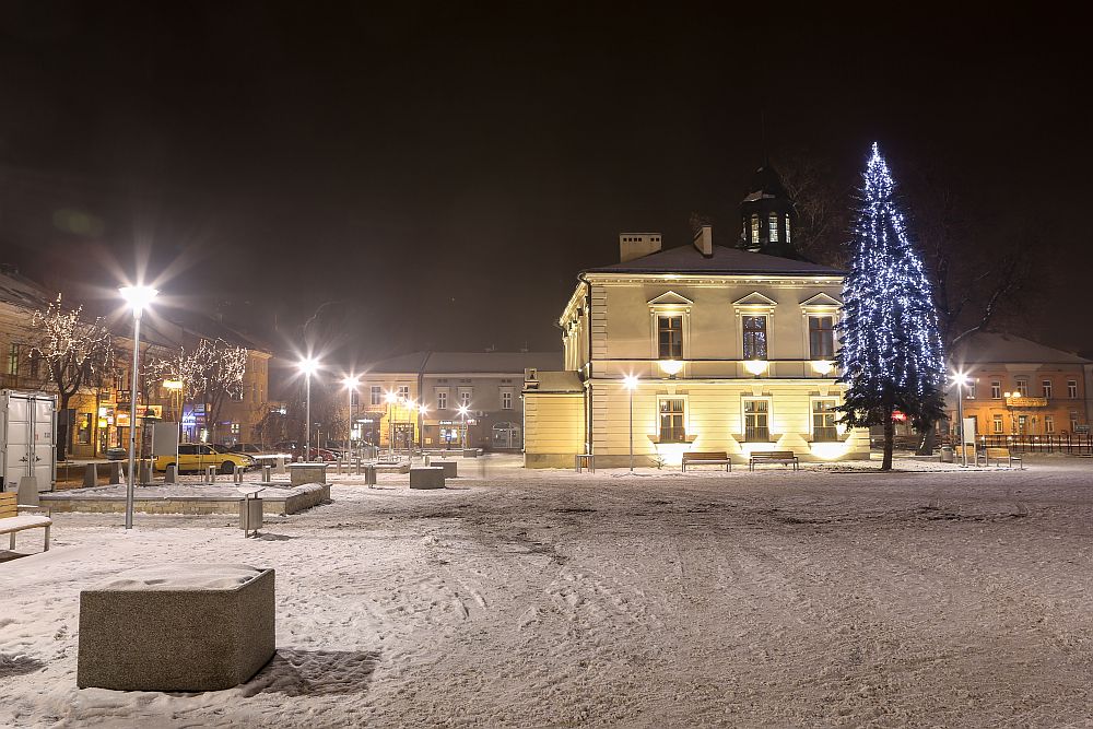 Nocne zdjęcia nowotarskiego Rynku po rewitalizacji.