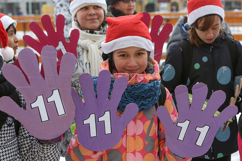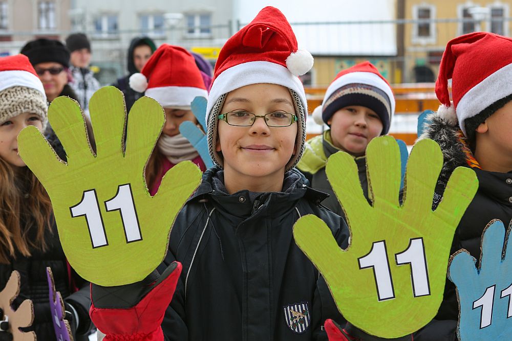 W tym roku dzieci ze Szkoły Podstawowej nr 11 ubrały choinkę miejksą która rośnie obok Ratusza w Nowym Targu.