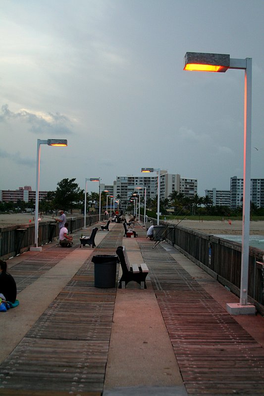 Pierwszy dzień na Florydzie to totalne zmęczenie po przeszło 24h podróży, ale warto było się trochę pomęczyć. Zaczęliśmy delikatnie - 4h maratonem po sklepach i obiadem w restauracji wzorowanej na dżunglę. Były ruszające się małpy, słonie, hipopotamy, papugi. W ogromnych akwariach pływały morskie ryby, a z sufitu padał deszcz z imitowaną burzą, gdzie sufit rozświetlały błyski grzmotów...Później jeszcze wycieczka na molo...