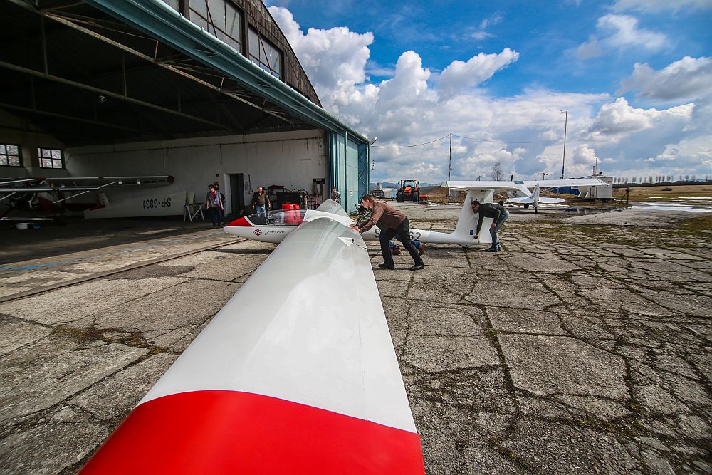 Przygotowywanie szybowców na nadchodzący sezon lotniczy w Nowym Targu
