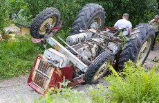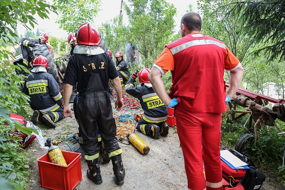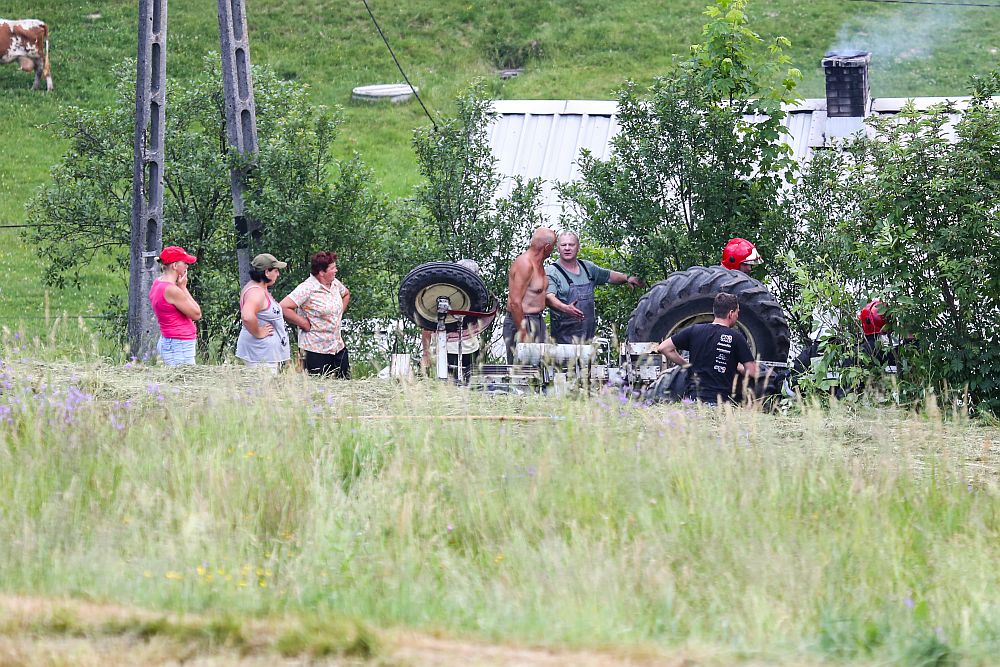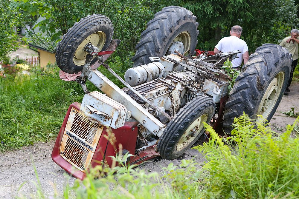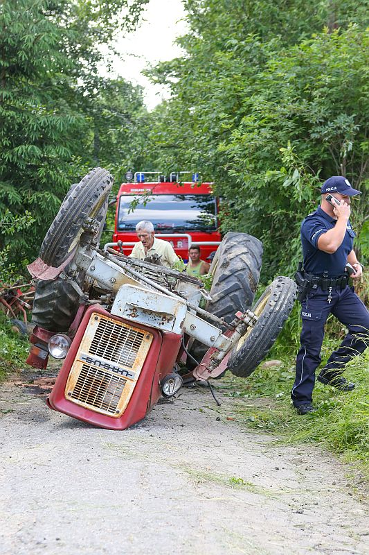 Na os. Zadział wywrócił się traktor przygniatając mężczyznę. Kierowca przewracał siano, kiedy ciągnik przechylił się na bok i spadł ze skarpy lądując do góry kołami i przygniatając kierowcę.