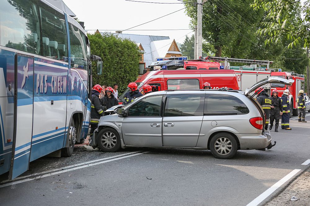 W Poroninie, na drodze w kierunku Bukowiny Tatrzańskiej samochód osobowy na zagranicznych numerach rejestracyjnych zderzył się czołowo z autobusem PKS Chełm, w którym jechały dzieci.