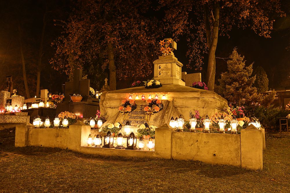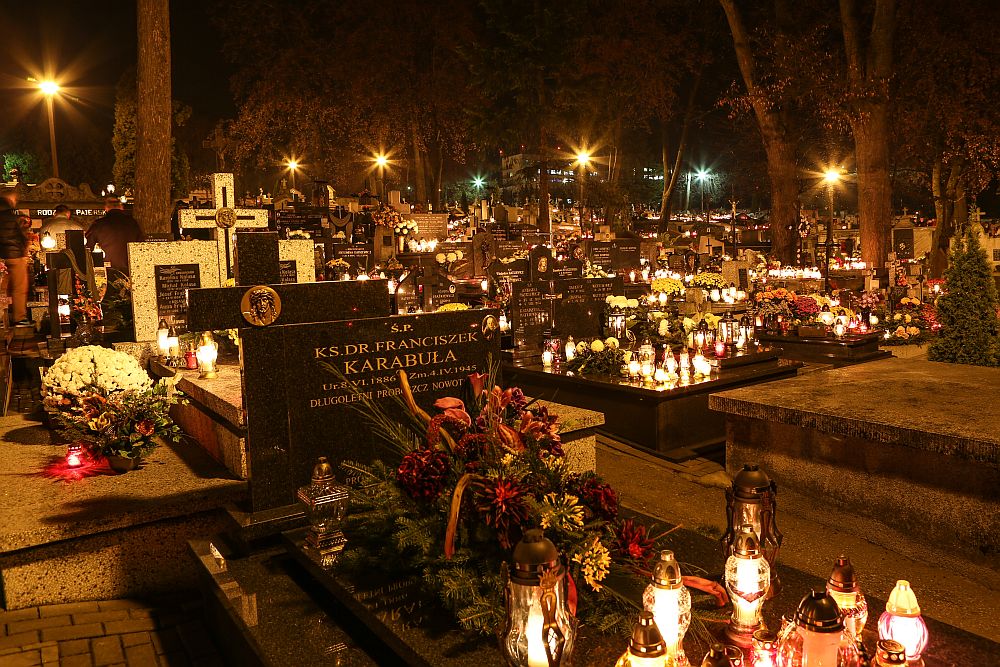Nowotarski cmentarz w nocy