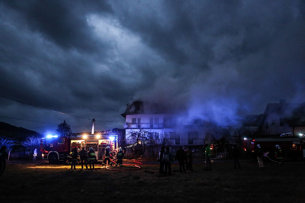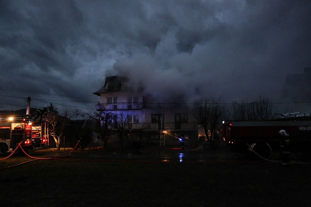 W ogniu stanął dom bliźniak. Zapaliło się poddasze budynku. Pożar gasilo strażacy z Nowego Targu i okolicznych jednostek OSP. Do akcji zadysponowano 14 jednostek.