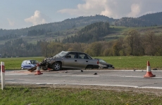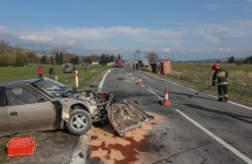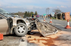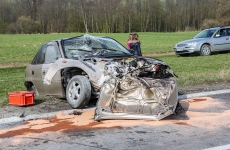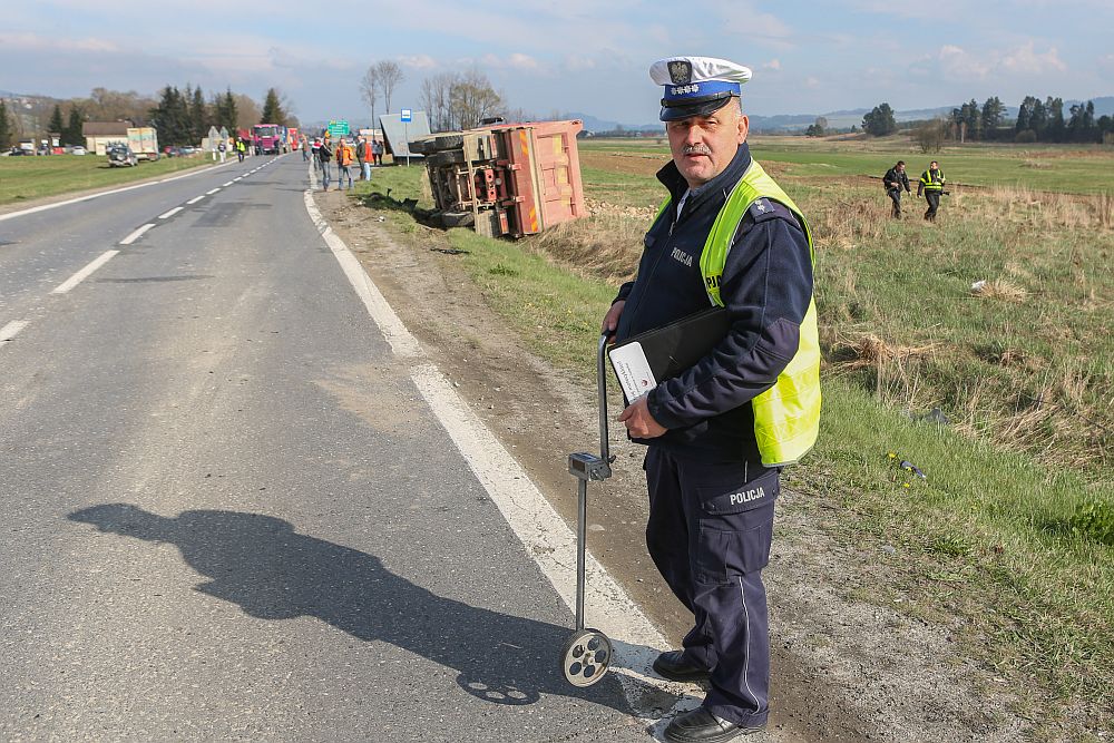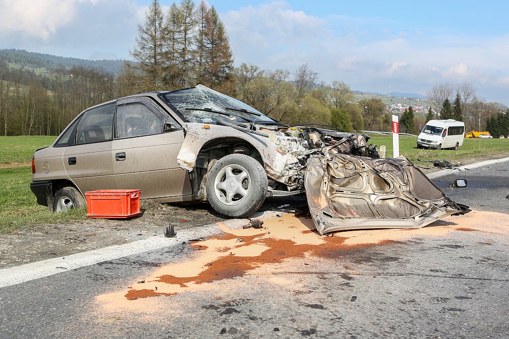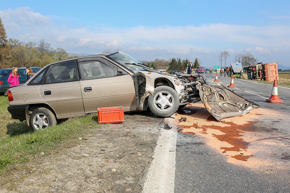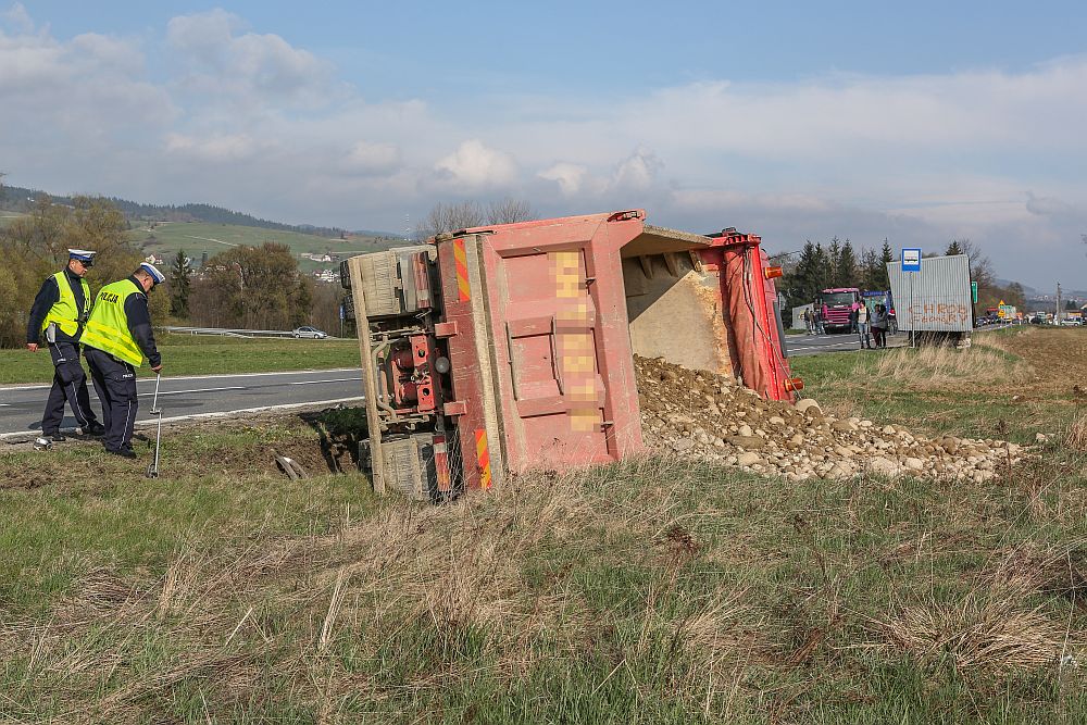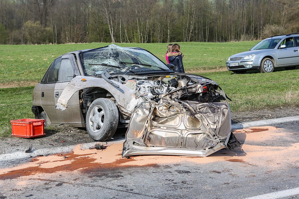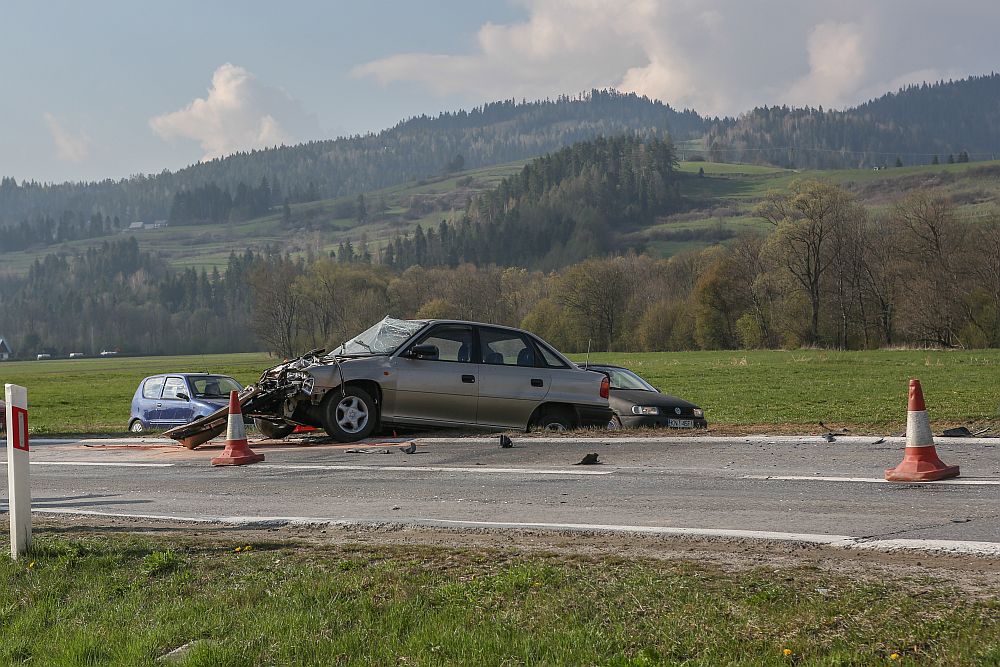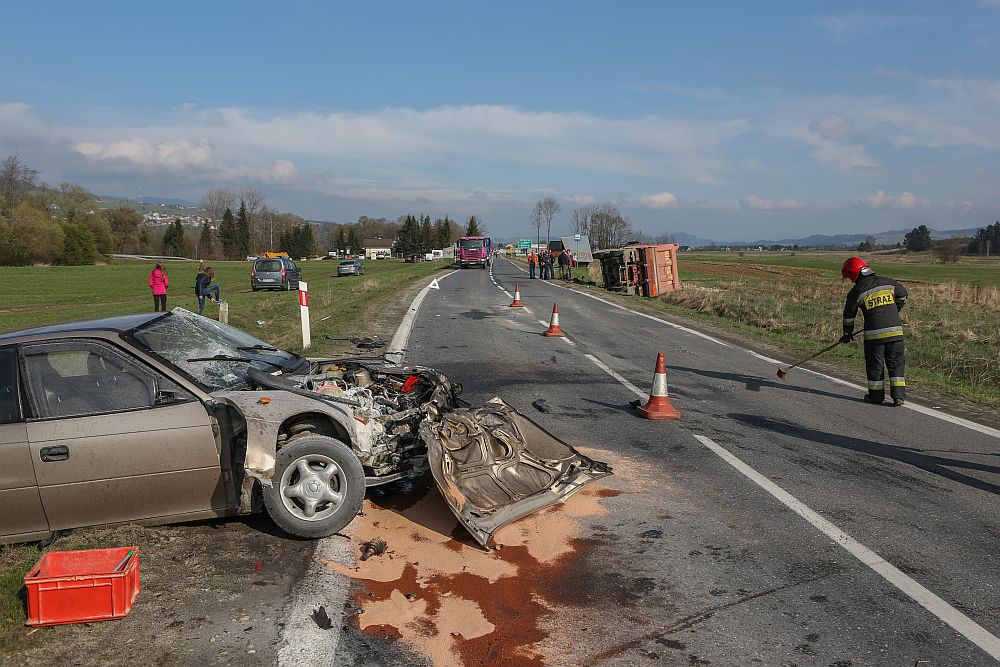 Samochód osobowy zderzył się czołowo z wywrotką wyładowaną kamieniami w Harklowej