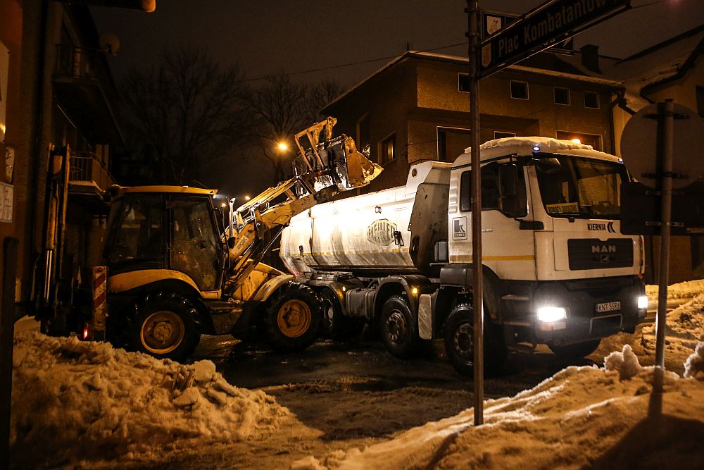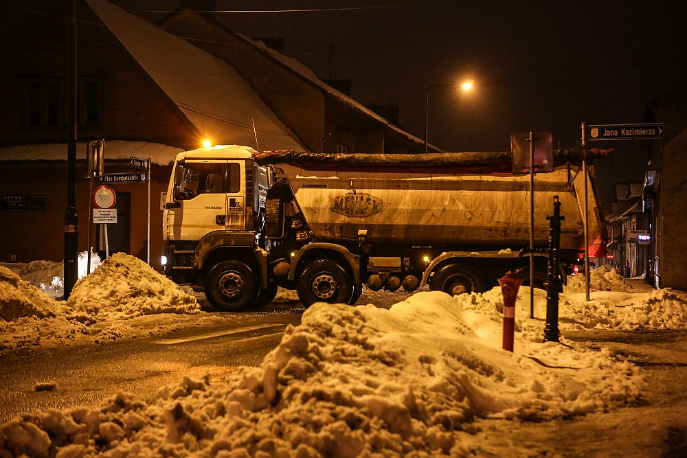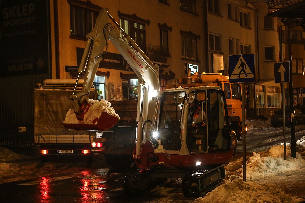 Wywożenie śniegu z ulic Nowego Targu