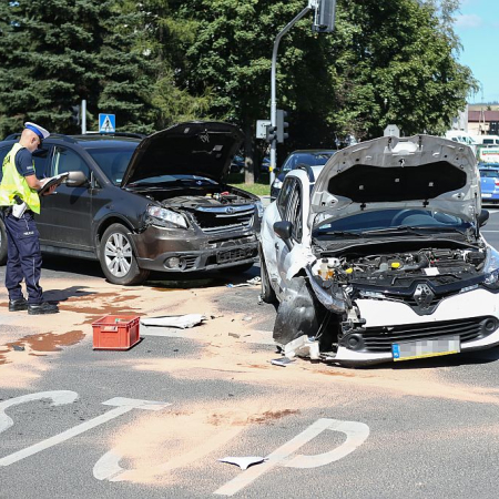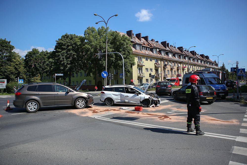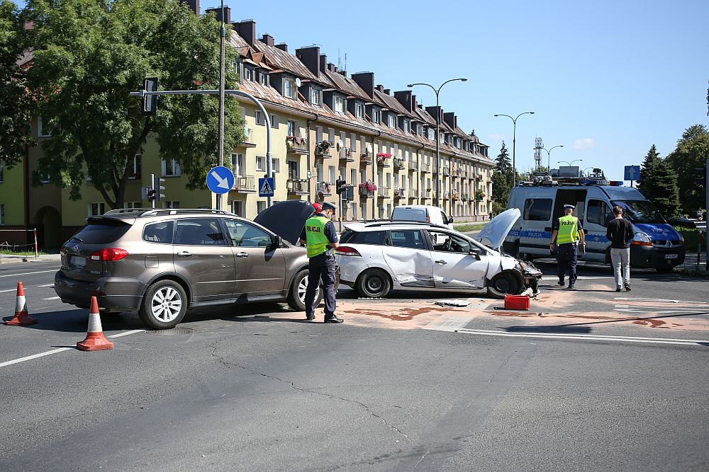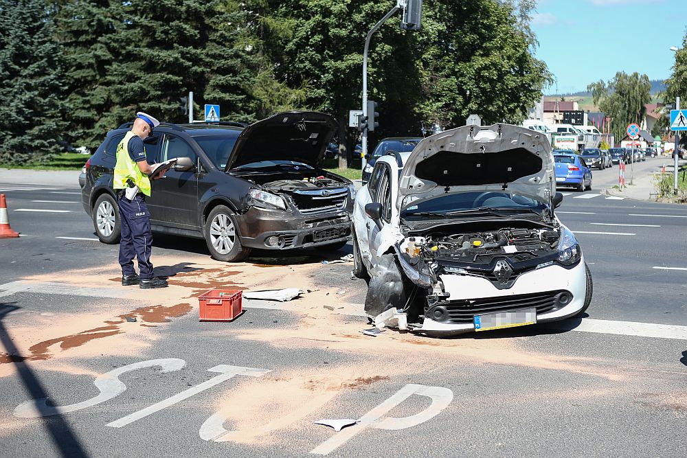 Zderzenie samochodów na skrzyżowaniu Al. 1000-lecia i Kopernika w Nowym Targu