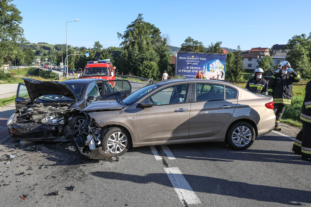 Zderzenie samochodów w Klikuszowej na Zakopiance