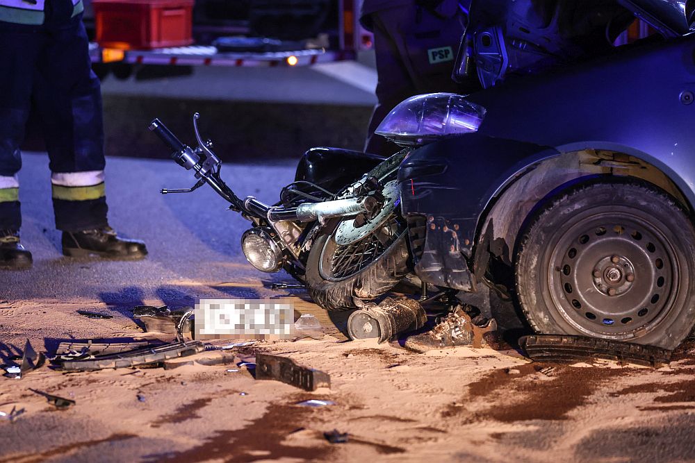 Zderzenie samochodu z motocyklem na Niwie w Nowym Targu