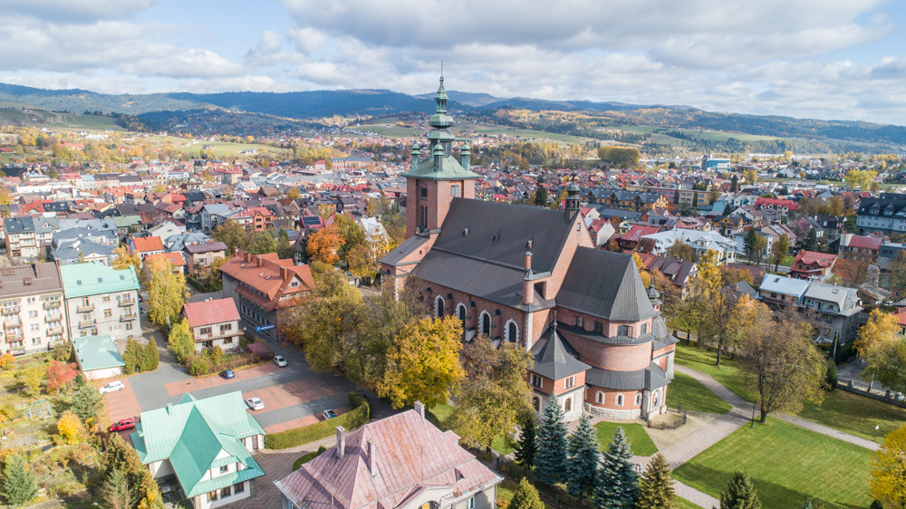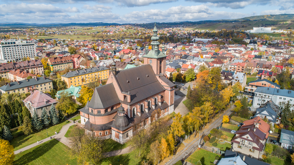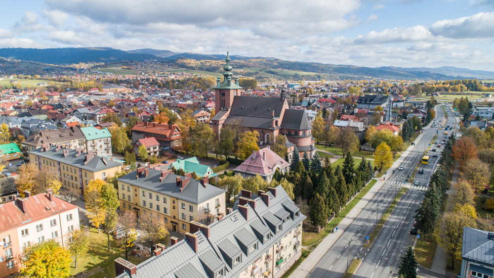 Jesienny Nowy Targ z lotu ptaka