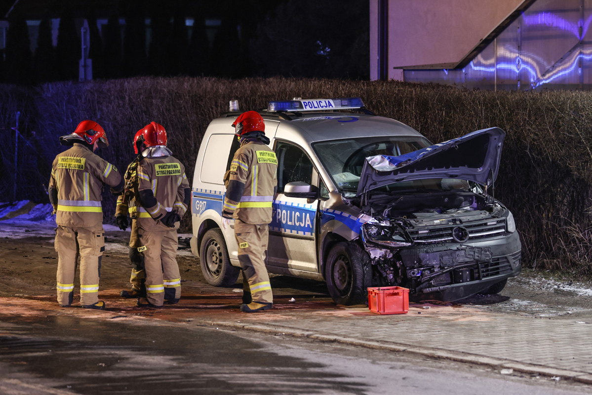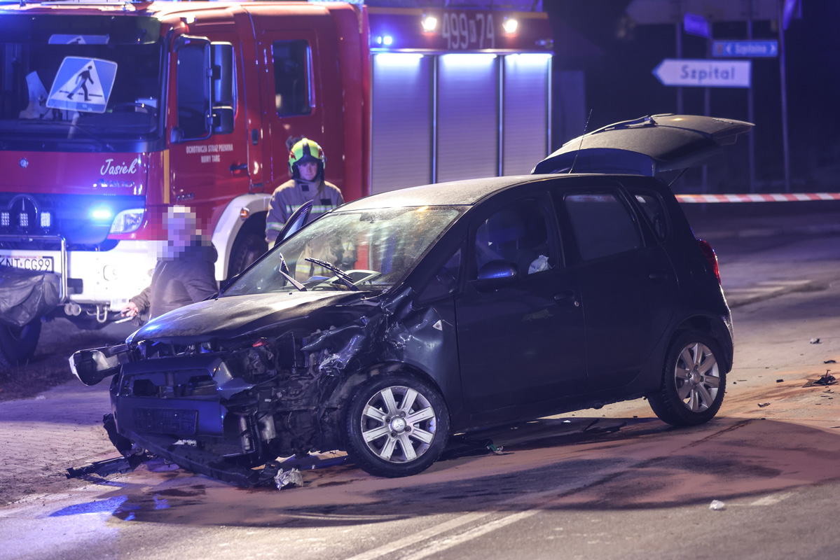 Zderzenie radiowozu i samochodu osobowego w centrum Nowego Targu