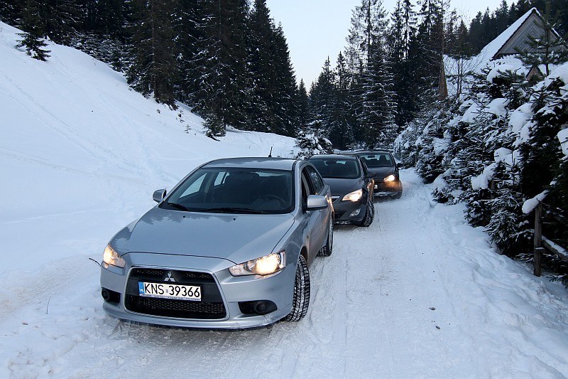 Zdjęcia najnowszych modeli Mitsubishi Lancera, Opla Astry i Volkswagena Golfa
