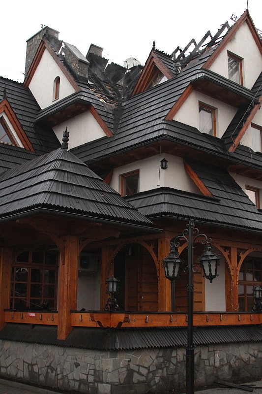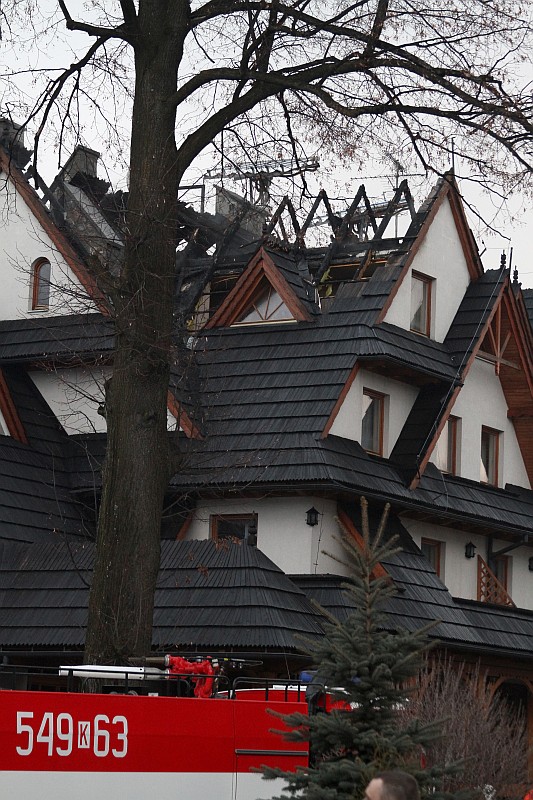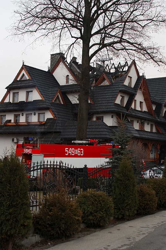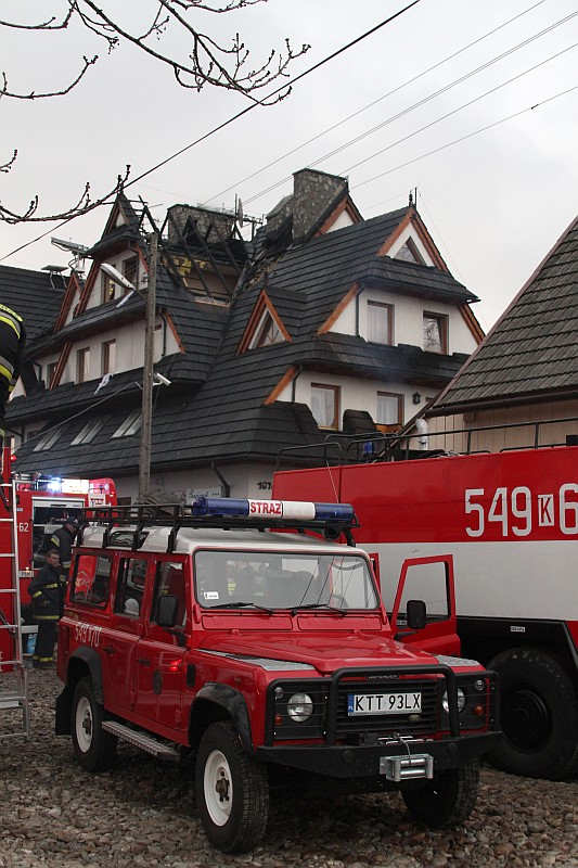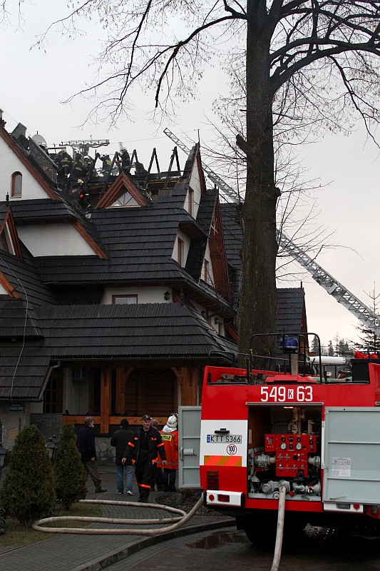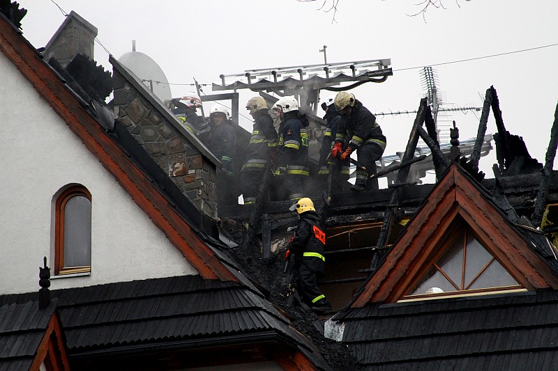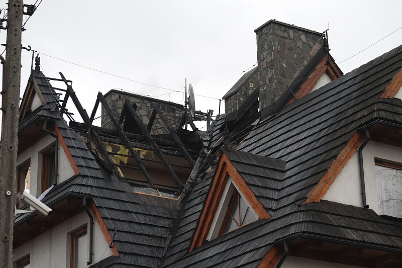Dzisiaj okolo godziny 17.00 Zakopiańska Straż Pożarna odebrała wezwanie o palącym się dachu jedno z pensjonatów w Białce Tatrzańskiej. Na miejsce przybyło ponad 20 zastępów straży pożarnej, pożar szybko ugaszono, ale i tak ogień strawił przeszło 100m. kwadratowych dachu i część poddasza. Straty oszacowano na 200-300 tysięcy zł.