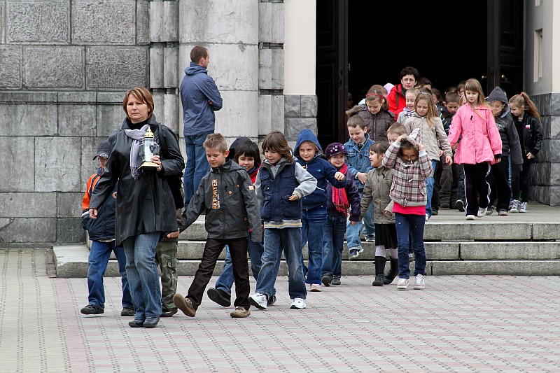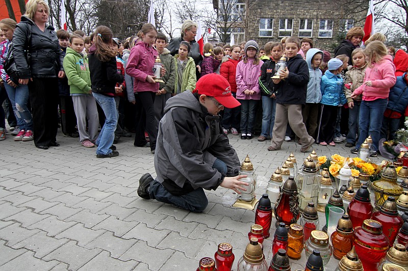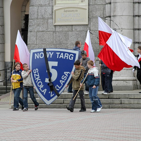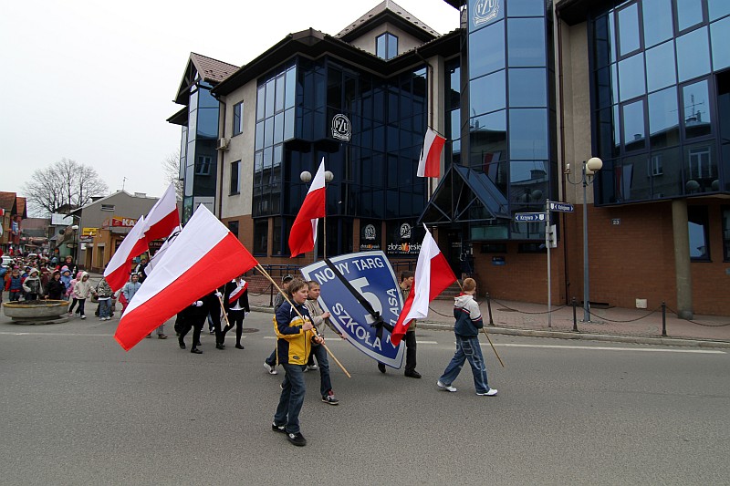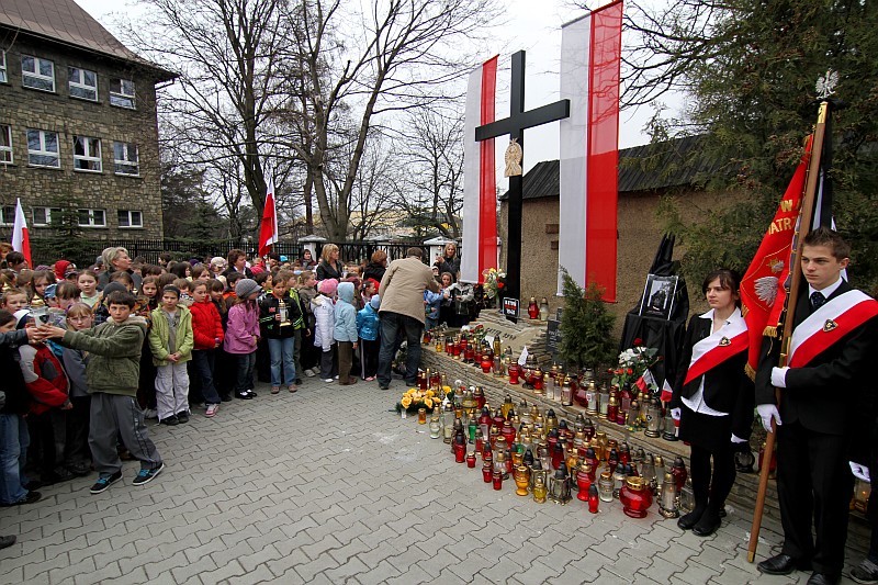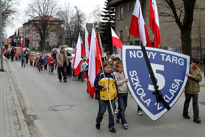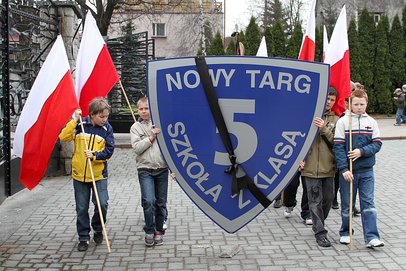Ponad 600 uczniów Szkoły Podstawowej nr 5 przeszło dzisiaj w marszu żałobnym ulicami Nowego Targu, aby dojść pod Krzyż Ofiar Katynia i tam oddać hołd zmarłym w katastrofie lotniczej, która miała miejsce w sobote 10 kwietnia 2010r.
