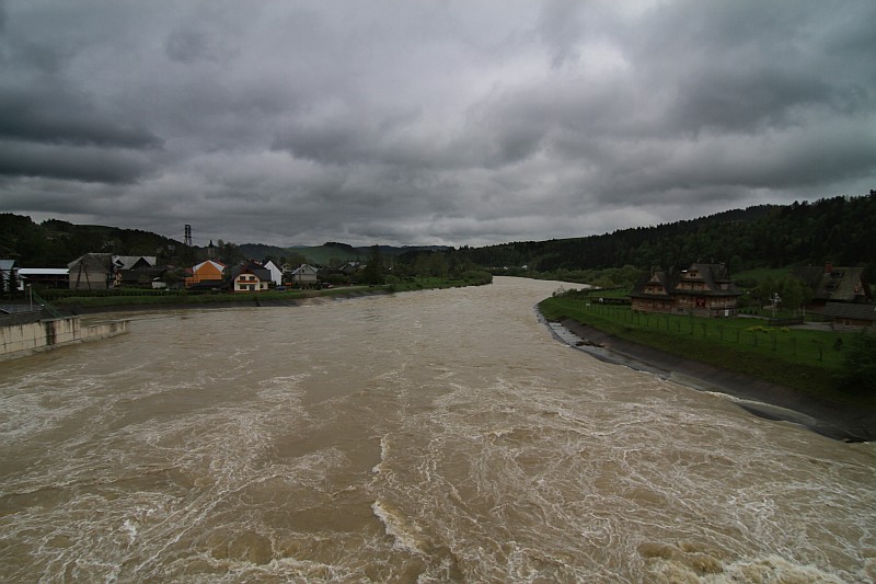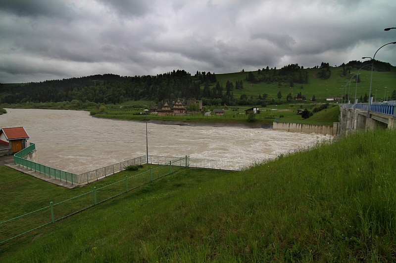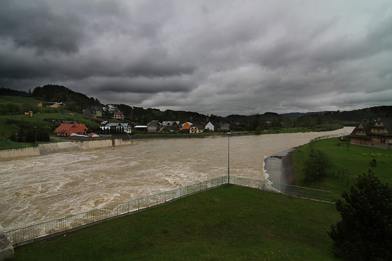 Dzień dzisiejszy zaczął się dość niespokojnie, ponieważ rzeki które opadły przez noc, rano znowu zaczęły przybierać. Na szczęście po południu sytuacja zmieniła się na lepsze - rzeki opadają. Poziom wody w Jeziorze Czorsztyńskim jest bardzo wysoki i dzisiaj dochodzi już do 3/4 śluzy. Woda spuszczana jest ze zbiornika wyrównawczego, tam otwarte są wszystkie grodzie.