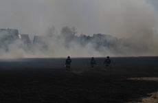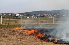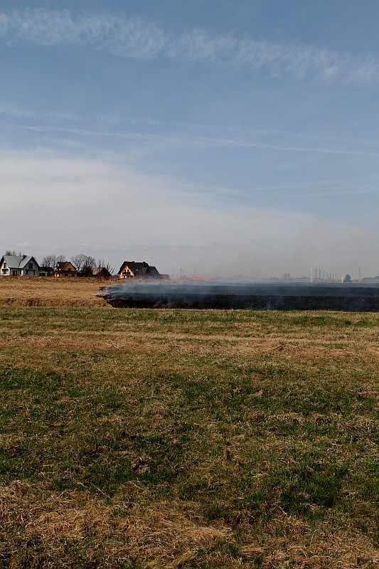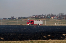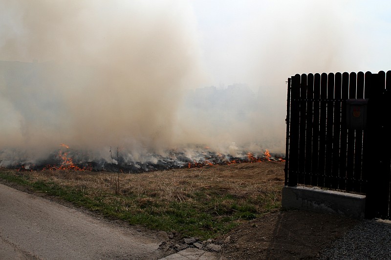 Zdjęcia z pożaru trawy na ul. Partyzantów. Tym razem było groźnie, gdyż pożar zagrażał budynkom mieszkalnym.
