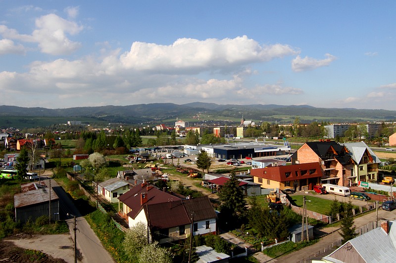 Panorama Nowego Targu z komina tartaku