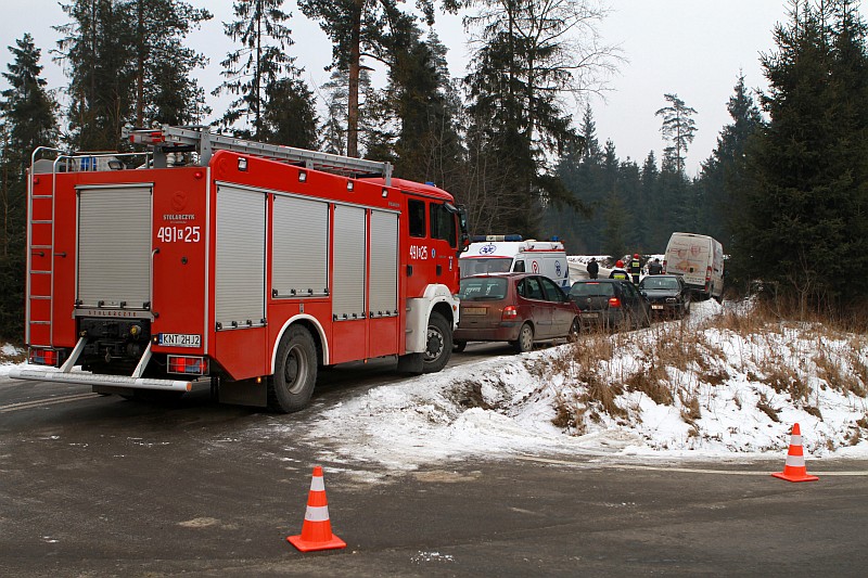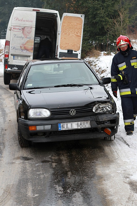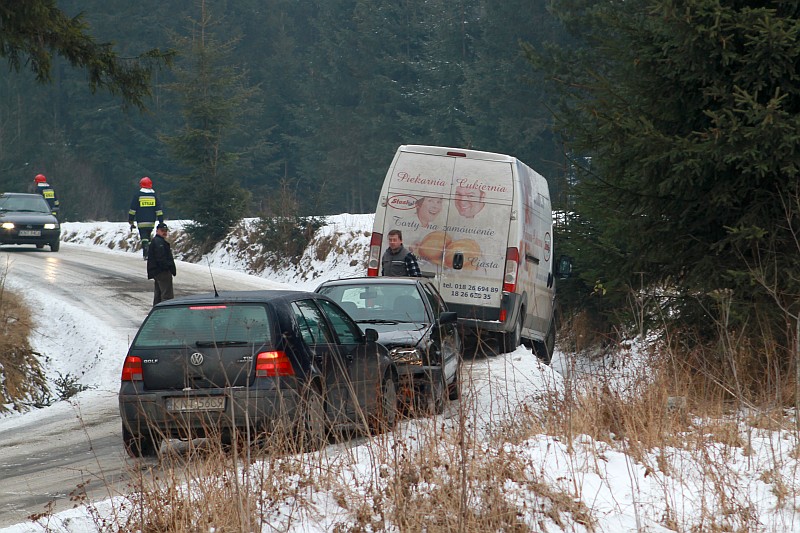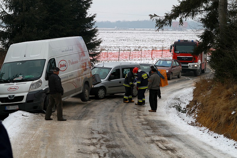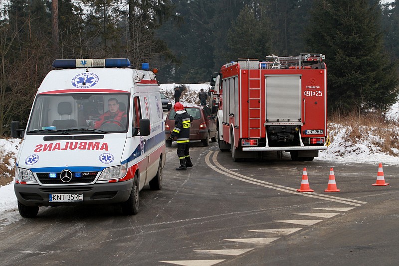 Na śliskiej drodze, przy wyjeździe z ulicy Grel w stronę Ludźmierza lub Trutego, doszło do zderzenia samochodu osobowego z busem. W wyniku wypadku obrażenia odniosła kierująca samochodem osobowym.